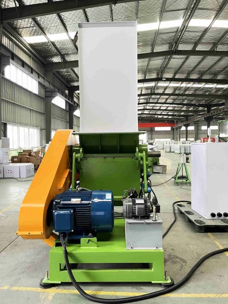 Промышленная роторная дробилка для измельчения крупногабаритных полимерных отходов: ПЭТ-бутылок, канистр, ящиков, труб, бамперов, литников, бракованных изделий. Роторный механизм с ножами из инструментальной стали SKD-11 разрезает материал на фракцию 8–15 мм (сменные сита), пригодную для последующей мойки и грануляции. Оборудование является первым звеном любой линии переработки пластика и востребовано заводами по рециклингу, производителями вторичного сырья, пунктами приёма отходов.