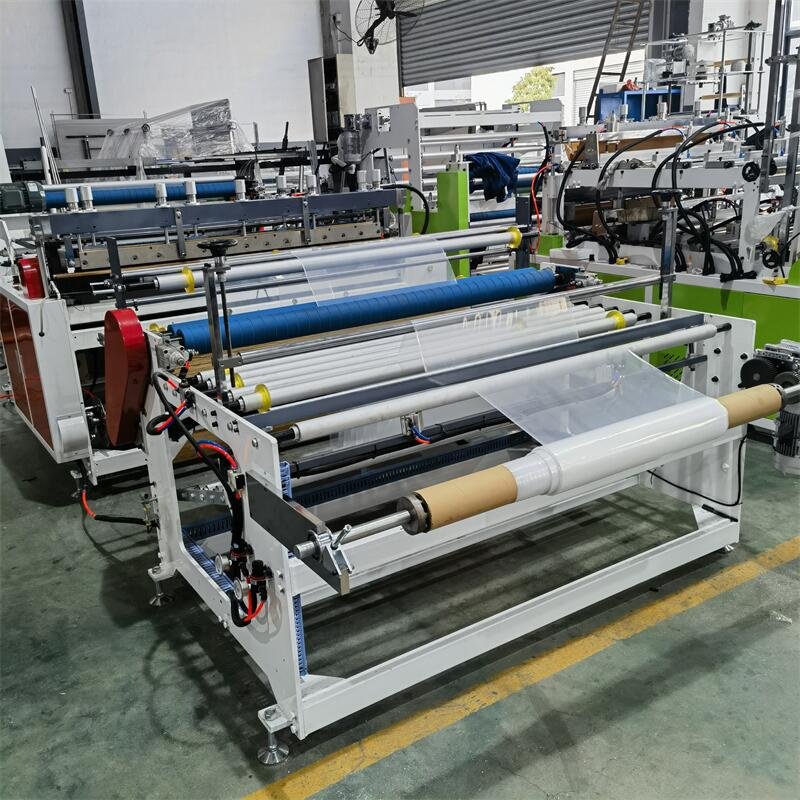 Автоматическая машина для производства фасовочных пакетов (пакеты-струна) в рулонах на картонной втулке или без неё, с перфорационной линией отрыва. За один проход выполняется размотка рукавной плёнки, сварка дна, нанесение линии перфорации и намотка готовых рулонов. Управление PLC с серво-приводом фиксации длины пакета.