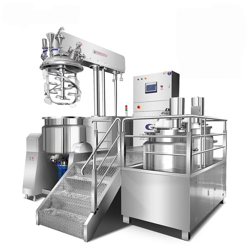 - Вакуумный гомогенизатор-эмульсификатор 200 л — главный котёл нерж. сталь 316L, коаксиальная мешалка (скребковая тихоходная 0–63 об/мин + высокоскоростной гомогенизатор 0–4500 об/мин), рубашка нагрева/охлаждения, гидравлический подъём крышки