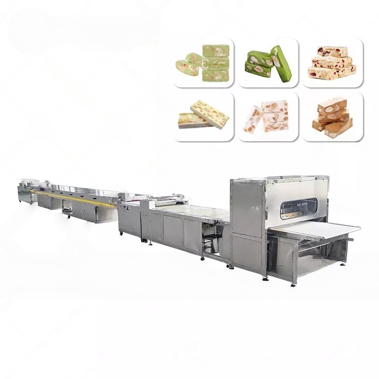Производственная линия для выпуска нуги — кондитерского изделия из уваренной с мёдом или сахаром массы, смешанной со взбитым белком и орехами или сухофруктами. Различают мягкую нугу (торроне, туррон) и твёрдую хрустящую нугу. Технология включает варку сахаро-медового сиропа, взбивание с белком, добавление обжаренных орехов, разливку между вафельными листами или в формы, охлаждение и нарезку. Продукция популярна как традиционная средиземноморская сладость, начинка для шоколадных батончиков и самостоятельный десерт.