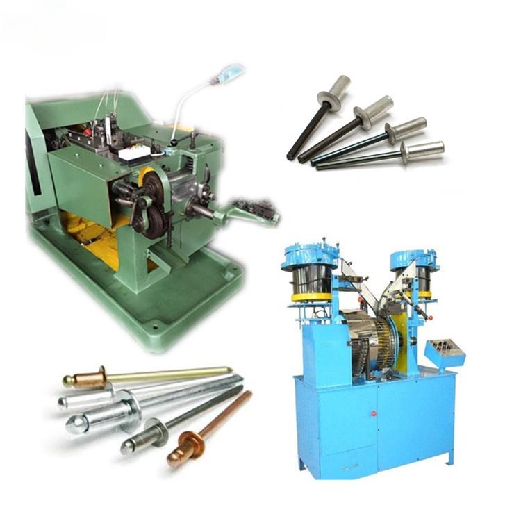Автоматический станок для производства вытяжных (тяговых) заклёпок методом холодной высадки и сборки. Вытяжная заклёпка состоит из двух элементов: тела заклёпки (гильзы) и стержня с утолщением. Технология включает высадку гильзы из алюминиевой или стальной проволоки, изготовление стержня и автоматическую сборку. Заклёпки применяются для соединения листовых материалов в машиностроении, вентиляции, производстве мебели, рекламных конструкций и бытовой техники.