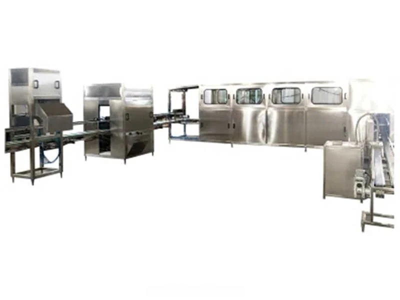 Автоматическая линия для розлива воды в 19-литровые (5 галлонов) поликарбонатные бутыли с полным циклом: загрузка → мойка → дезинфекция → розлив → укупорка → термоусадка колпачка. Для служб доставки воды, локальных производителей и розлива на источниках.