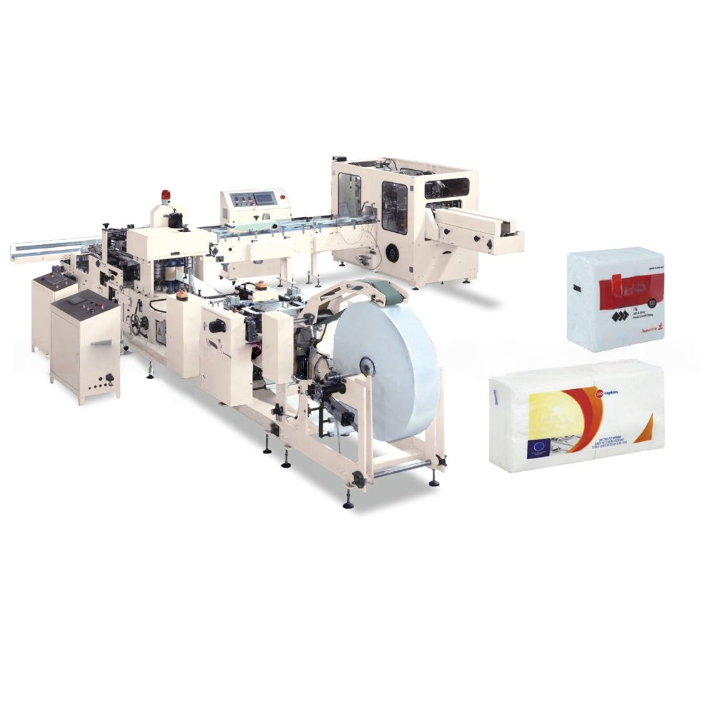 Мини-линия производства бумажных салфеток предназначена для выпуска столовых салфеток размером 24×24, 33×33 см из бумаги-основы (jumbo roll) плотностью 14–18 г/м². Технология включает размотку, тиснение, цветную печать (1–2 цвета), фальцовку в 1/4, нарезку, автоматический подсчёт и упаковку в пачки. Оборудование востребовано малыми производителями, поставщиками для общепита, компаниями private label.